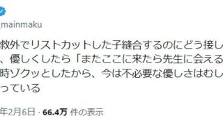 嫌儲【高市】 メンヘラ女子、病院で優しくしてくれた先生に会いたくて何度もリストカットを繰り返す