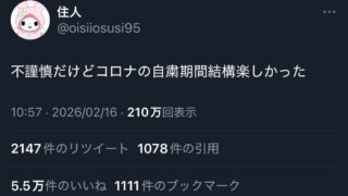 嫌儲X民「コロナの自粛期間結構楽しかった」5.5万いいね