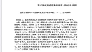 嫌儲厚労省「歯科治療に使う麻酔薬が足りないの」