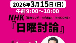 ニュー速3月15日(日)『日曜討論』 わいわ・高井たかし副幹事長が生出演