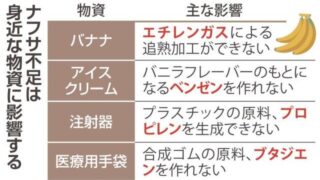 ニュー速+【🍌🍨🍫💉】ナフサ不足、意外な物資に余波 バナナ、アイス、チョコレート… 予防接種の注射器も