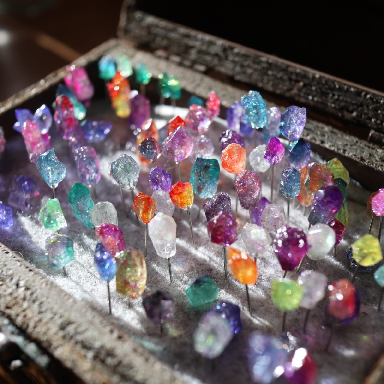 立体の鉱石型まち針を山ほど作って、宝箱にずらりと並べて売ってるのは、わたしくらいかな……