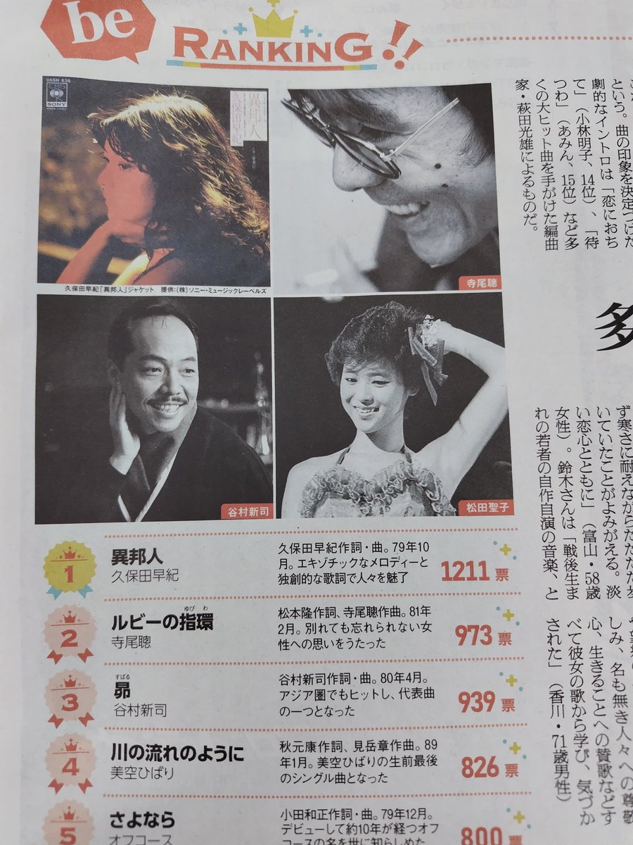 今週のbeランキングは、好きな80年代のヒット曲。