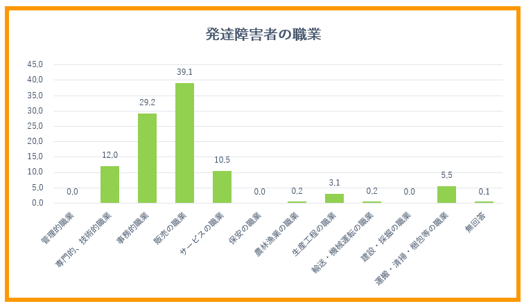 ハッタショの就労グラフを見るとサービスと販売業だけで半数を占めている