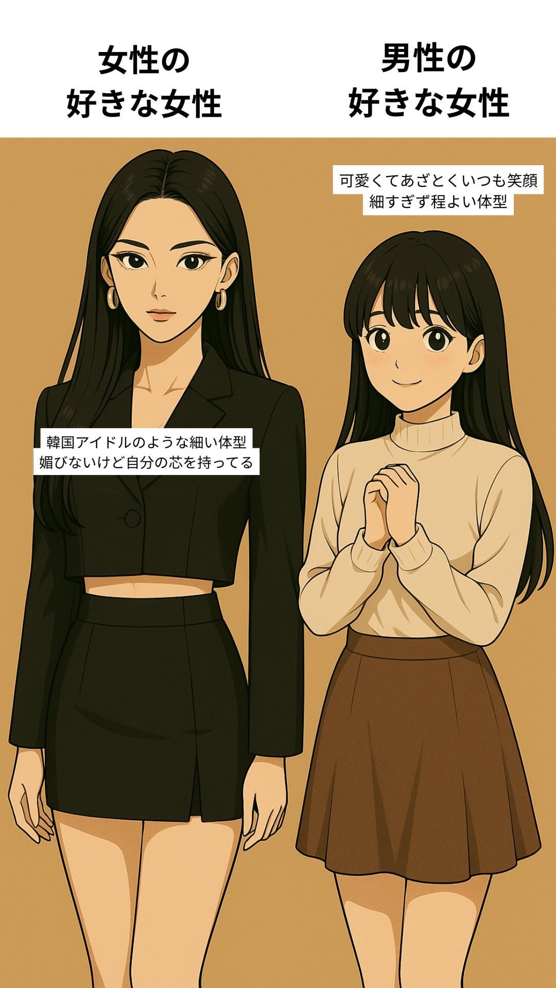 男は長瀬達也みたいなガタイのいい男らしい男になりたがるけど、女はKPOPみたいなカマホモを好むようなもん