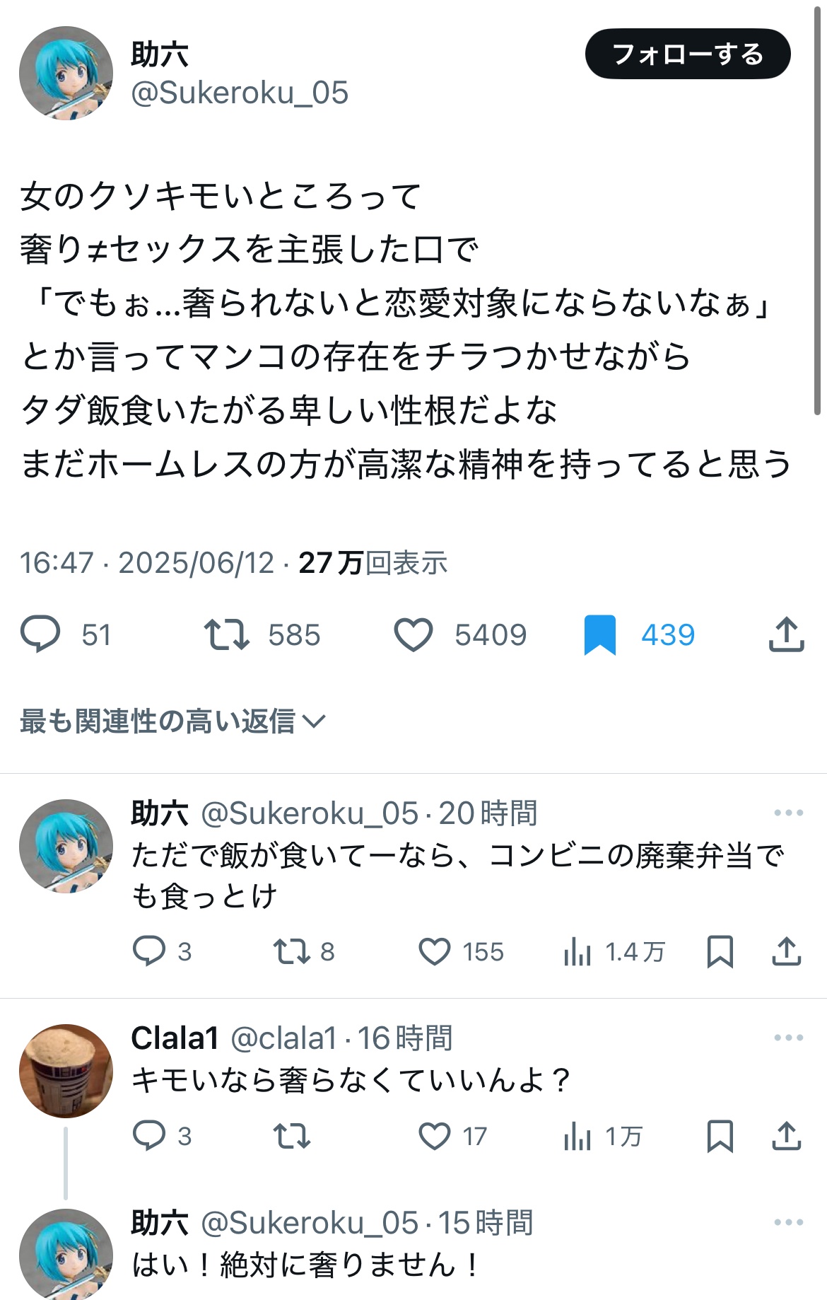 - 6 名前:匿名のゴリラ 投稿日時:2025/06/13(金) 13:47:40.80 ID:H/J+aQ5N0
