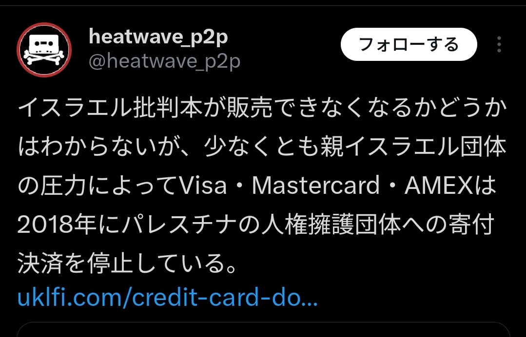 - VISAとMastercard使うやつはイスラエル支持ってことでいいか?