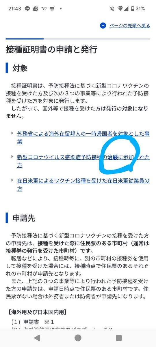友人がコロワク接種後から体調不良が続き救済制度のこと伝えたら申請方法調べるうちにショックを受けて返信がきた。 ちゃっかり「治験に参加された方」と書いてある。 ここにきて治験に参加したことの念を押してくるとは。 鬼畜。