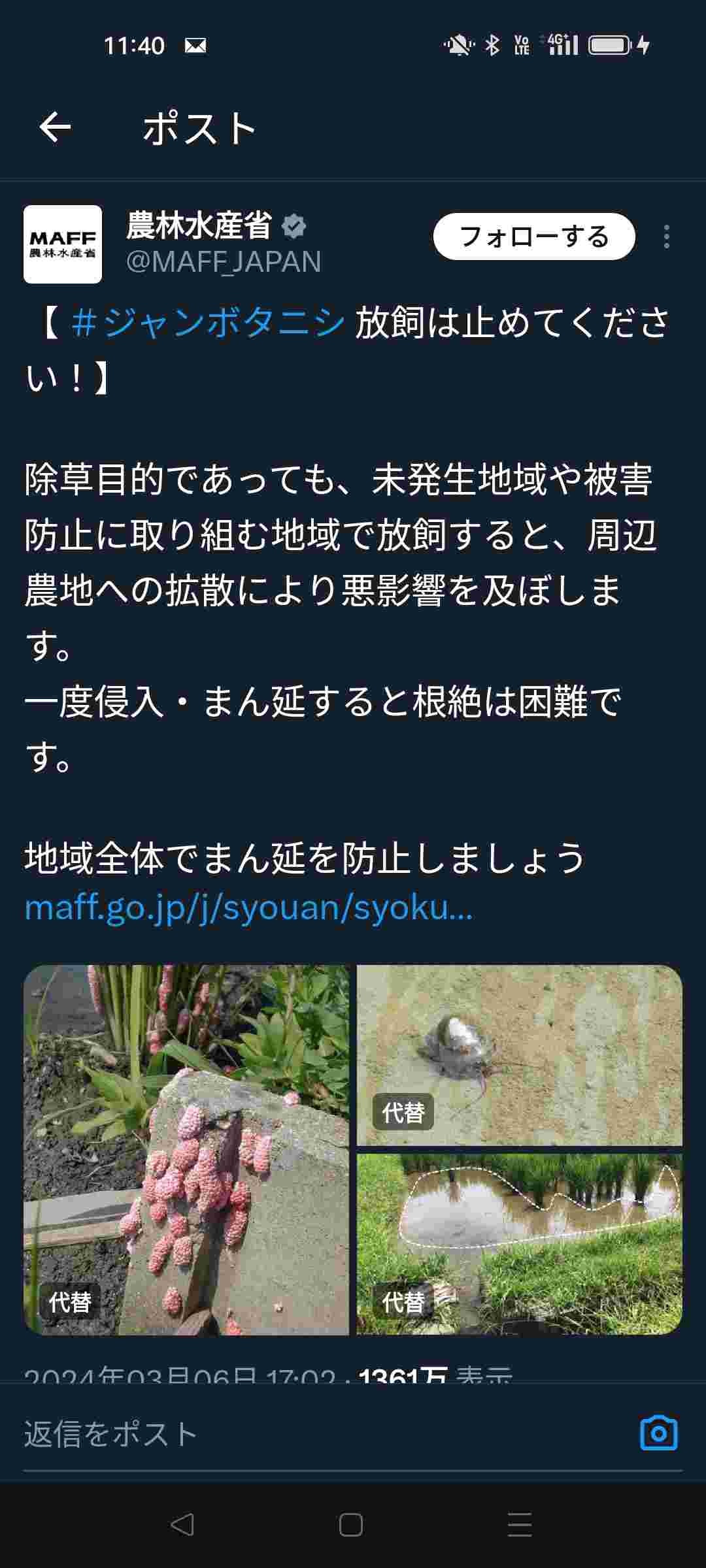 あらゆるメディアでジャンボタニシは環境荒らす外来種って言われてるのに一部だけを抜粋してまともな農法だと言い張るのヤバい