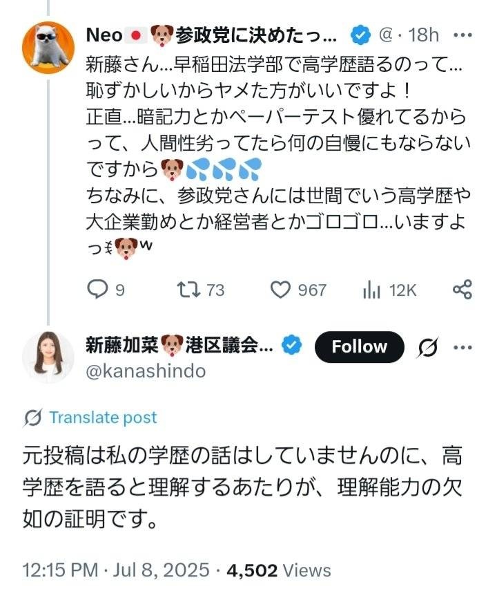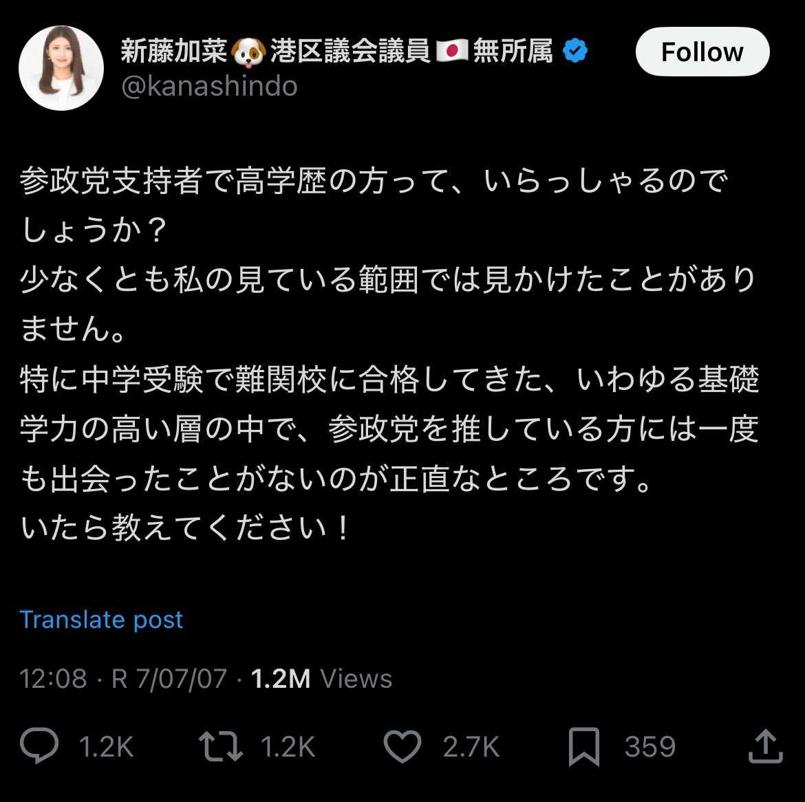 お勉強出来る癖にこういう他人を見下した言動が却って参政党の支持を招くって何で理解できないのかな?