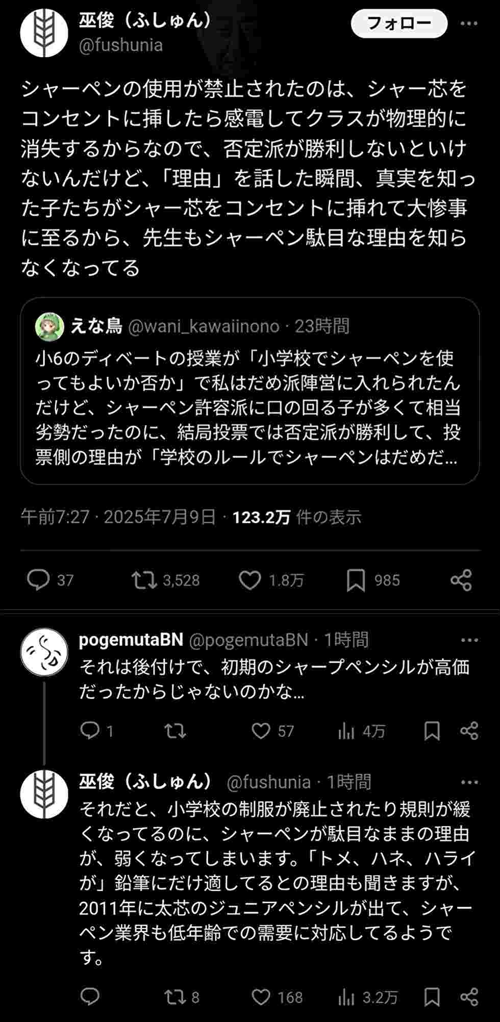 貧富の差が出るからな筆箱もギミック付きのやつ禁止だった