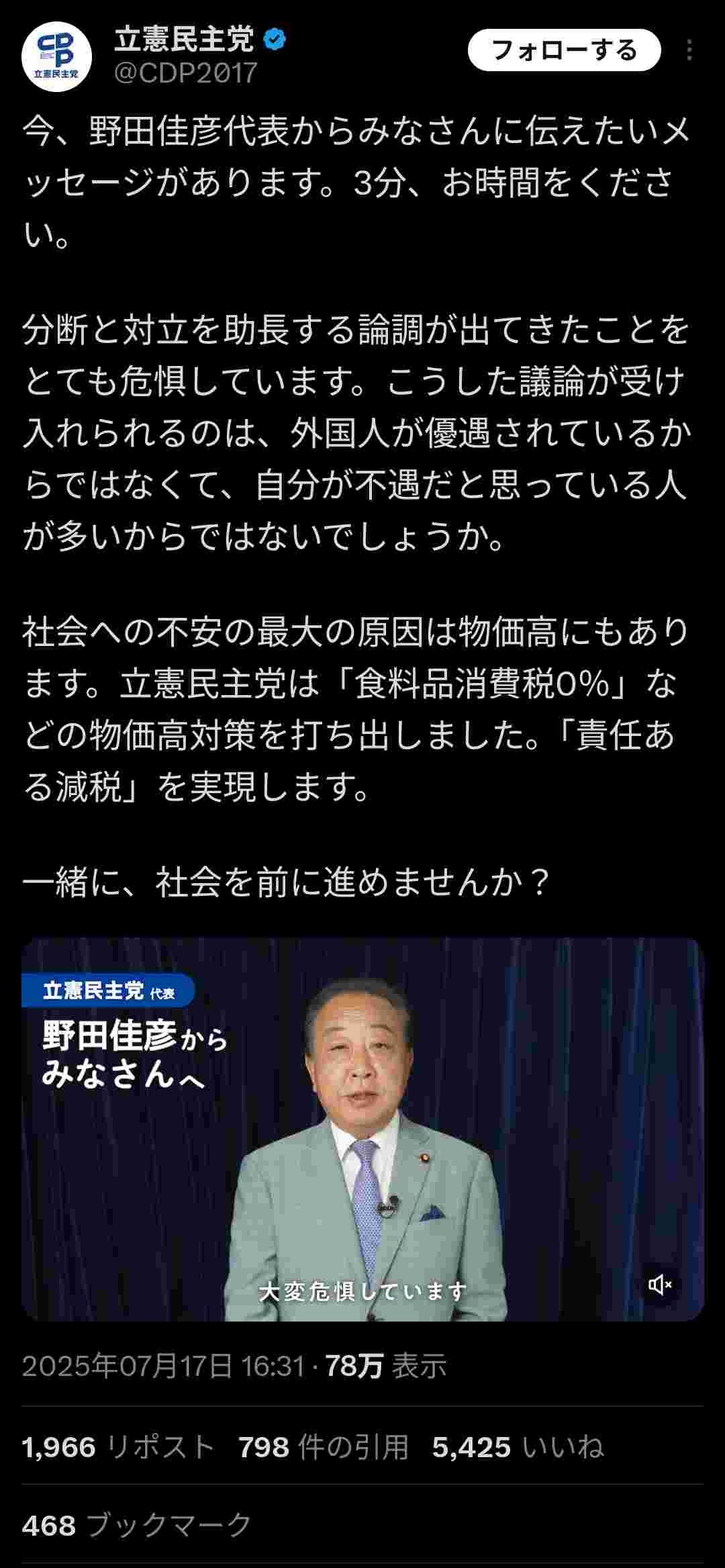 立憲「あなたが不遇な人生を歩んでいても我々は助けません。ぜひ投票を」