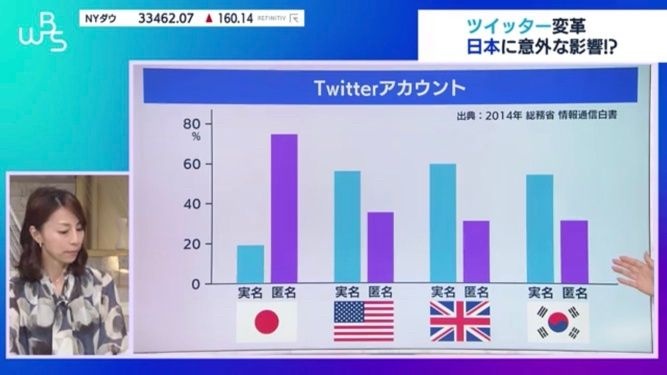 日本のTwitterの匿名利用の割合は75.1%で、アメリカは35.7%、フランスは45%、韓国は31.5%となっている。(2023.7.20)