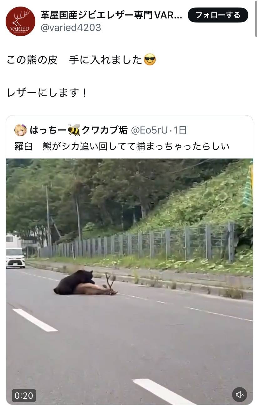 【クマ出没】生きたシカを襲うクマ 国道上でドライバーの目の前で首の辺りに激しく噛みつき 体長1メートルほど、近くに子グマもいたという情報 北海道羅臼町