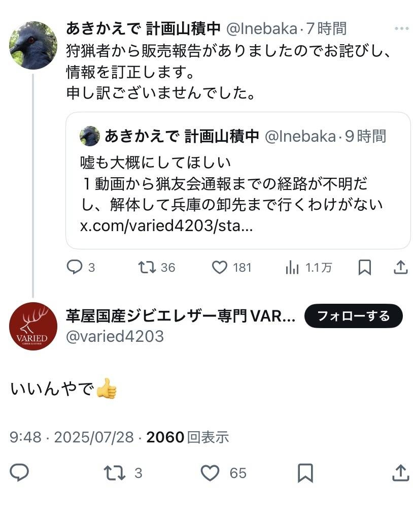 茸本さんの新しい動画でもジビエ業者の人出てきてるし