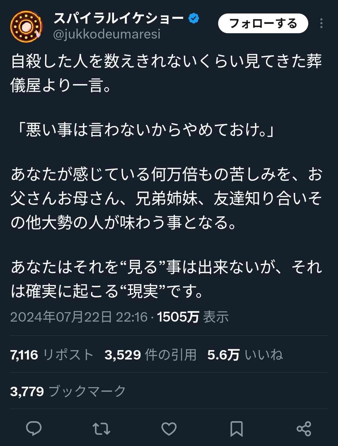 じゃあ自殺したあと苦しかったら家族もジサツすりゃよくね