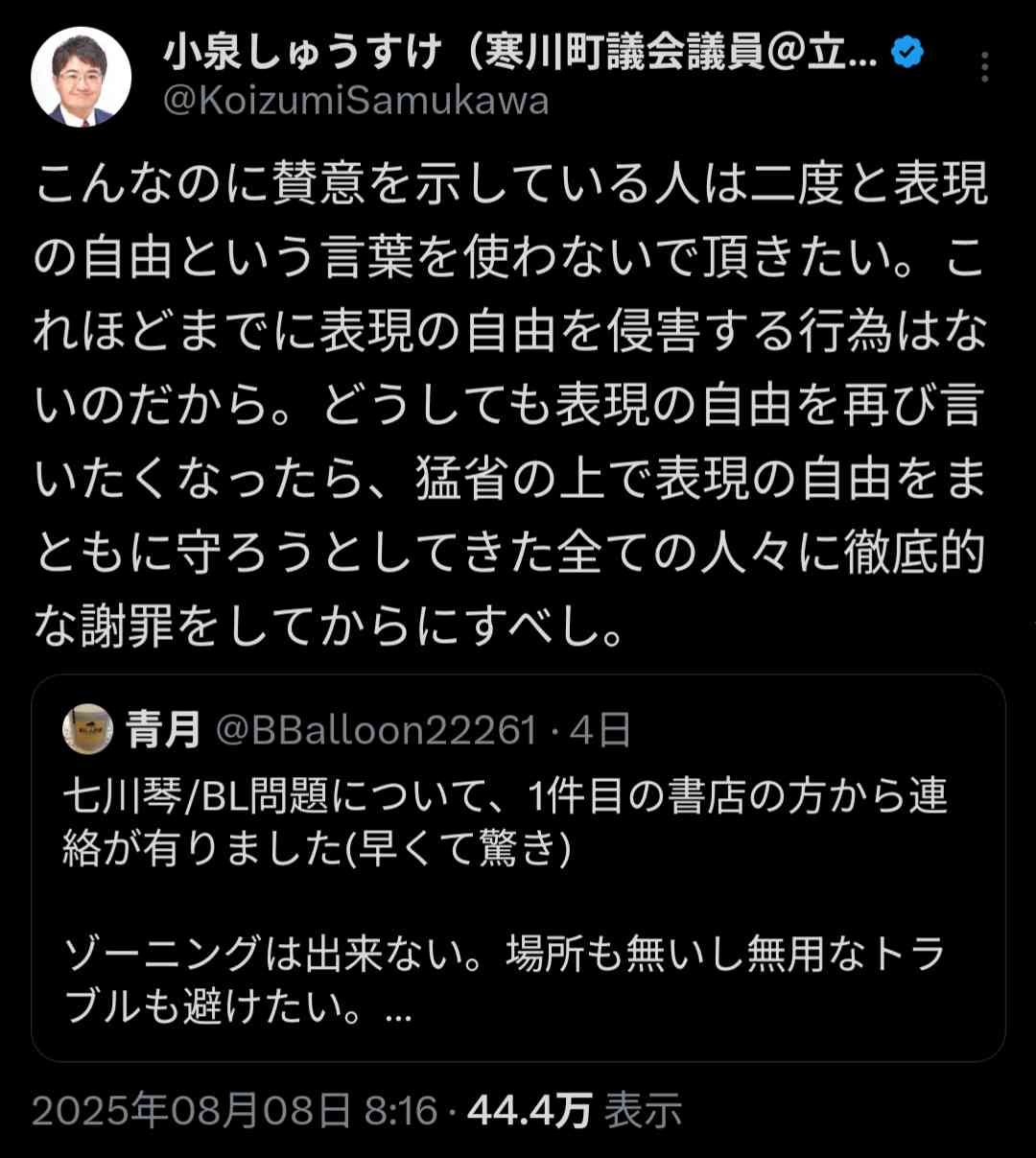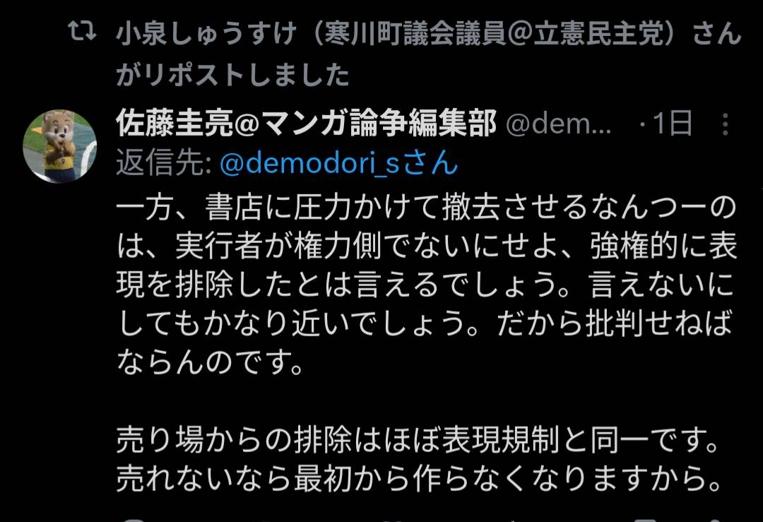 でも実際に書店に掛け合うなどするのは表現の自由を侵す行為だから許さない
