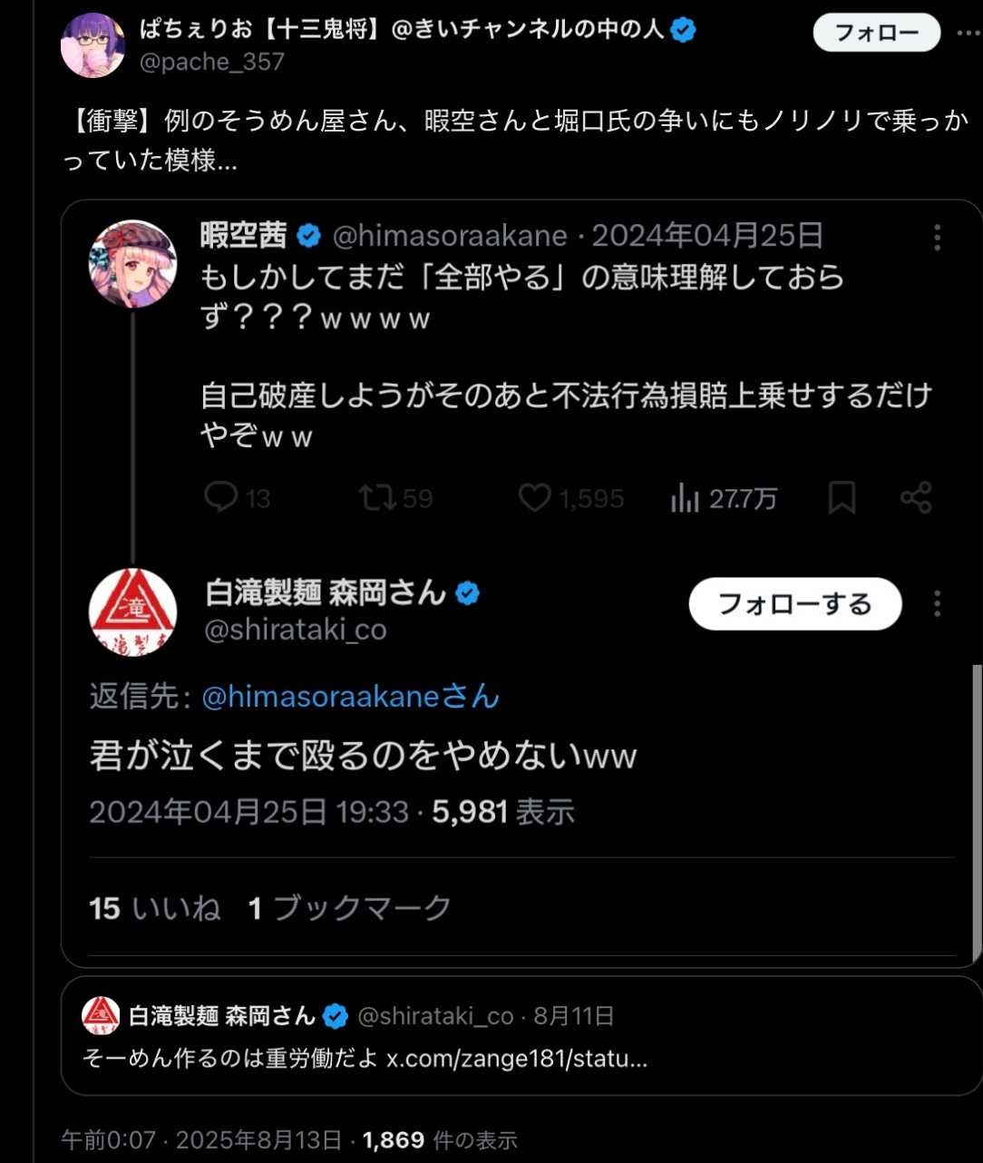 完全な支援者として行動してる奴が暇茜に呼応して煽りを決めてる