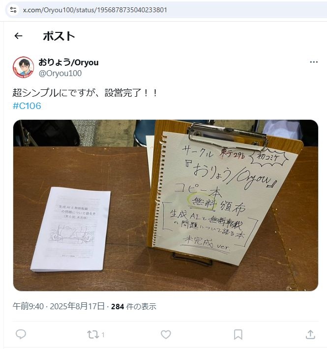 というかAIがやってること、同人作家がやってることとかちゃんと考えていくと同人の方がヤバいまであるんよな