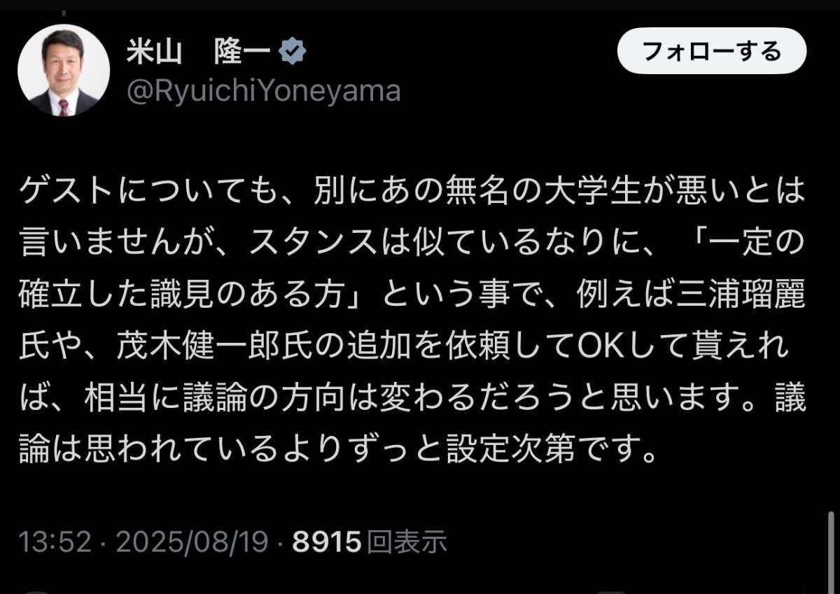 米山は本当に一度病院行ったほうが良いレベルでXで常に何かしらに噛みついてる