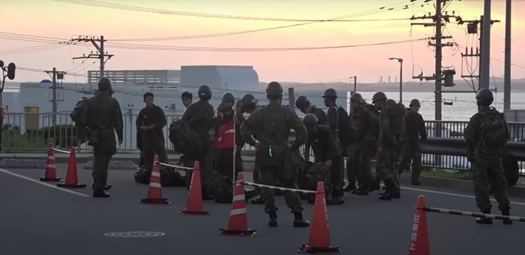 陸自が外で行進訓練してて休憩に道の駅を使用