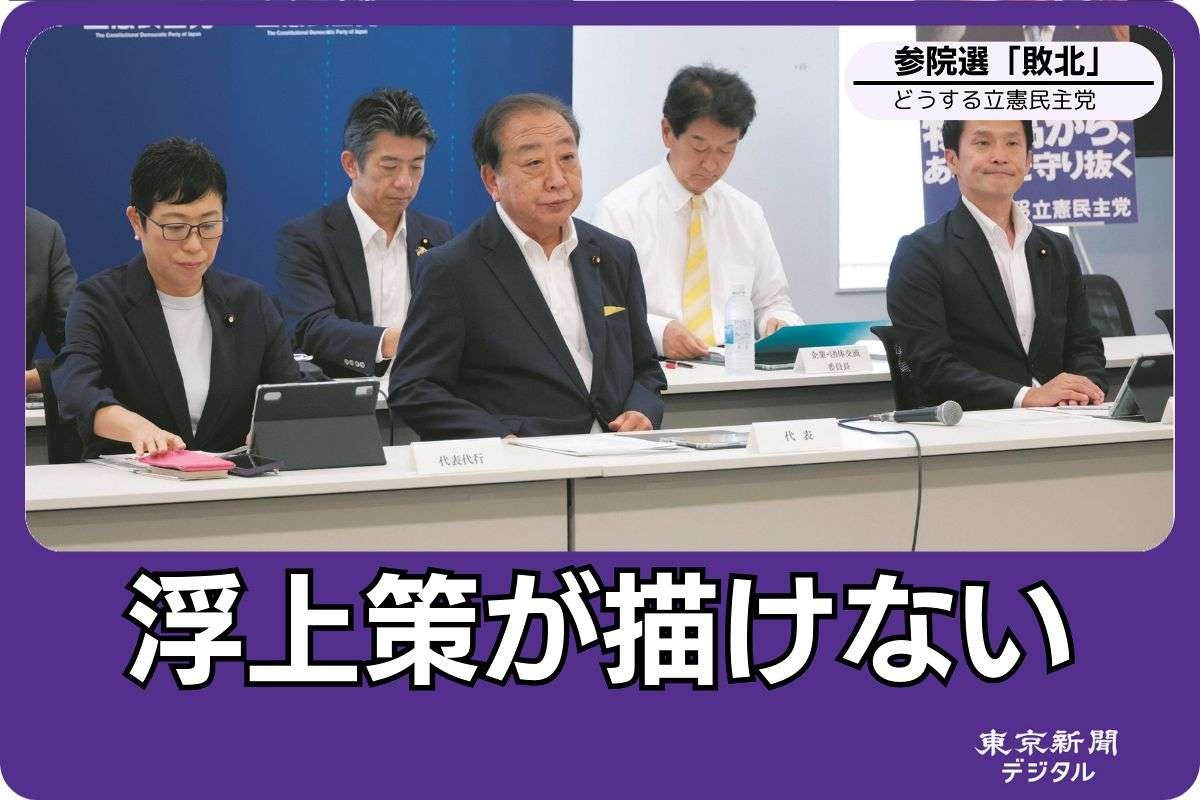 立憲民主党は26日の参院選総括で「事実上の敗北」を認めたが、党勢回復に向けた党改革の具体像は示せなかった。比例得票数が野党3位に沈んで野田佳彦代表の求心力は一気に低下。野党連携は進まず、衆参少数与党となっても主導権を握れないままだ。引き続き政権交代を掲げるが、党再建の道筋は描けていない。(大野暢子)