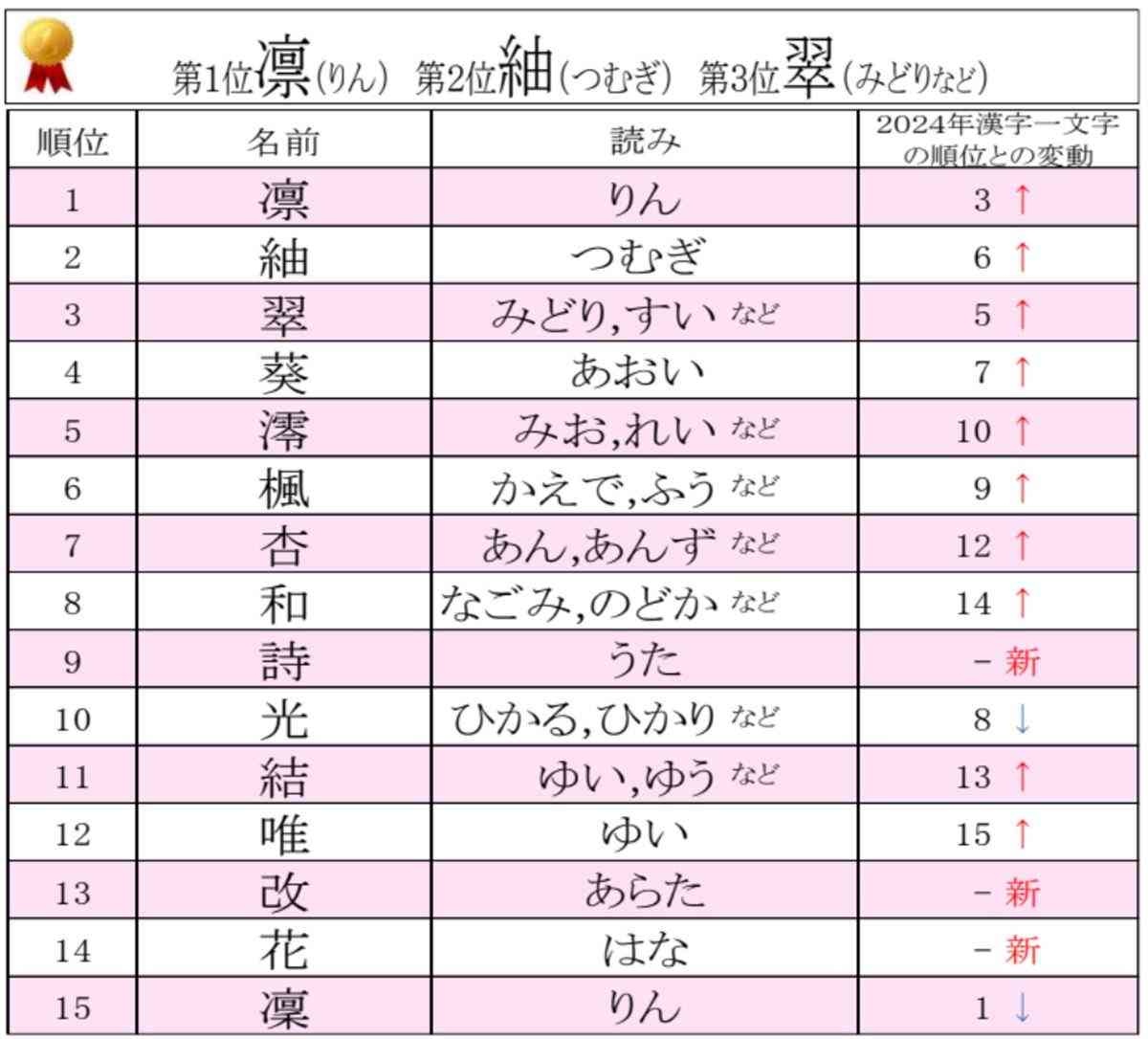 漢字一文字のランキングで、漢字一文字が上位を占めってなに?
