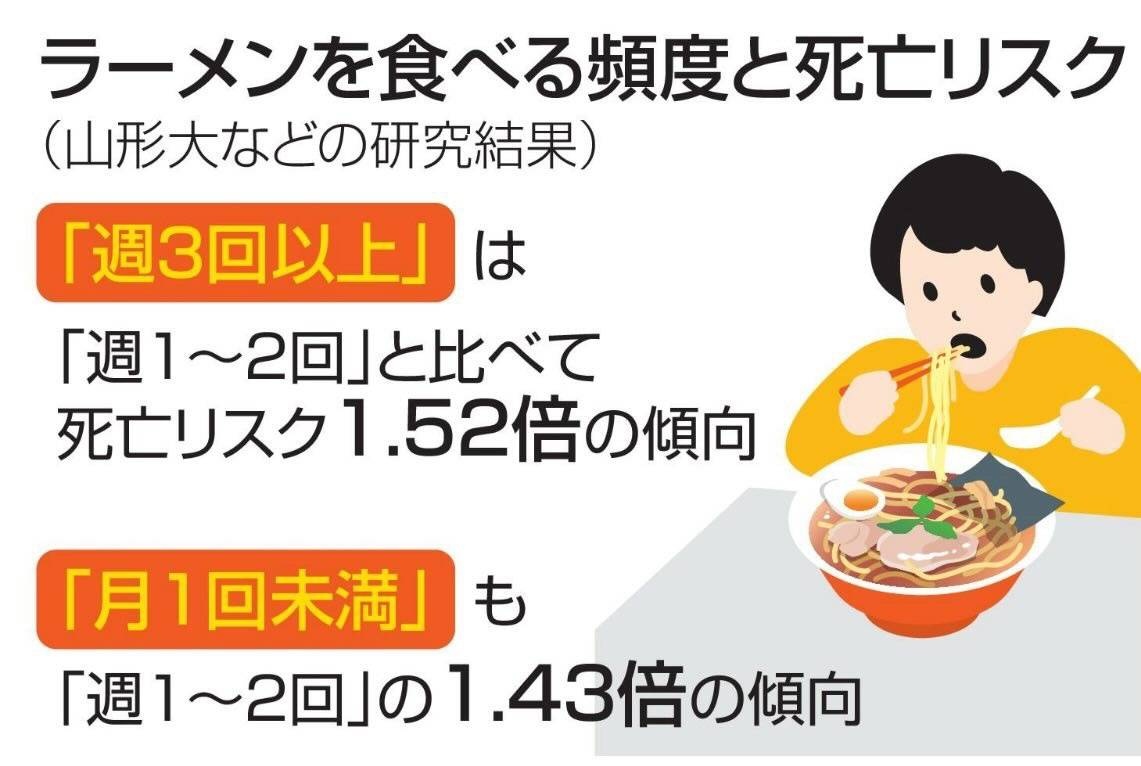「ラーメンを適度(週1、2回)に食べる人は死亡率が低い」