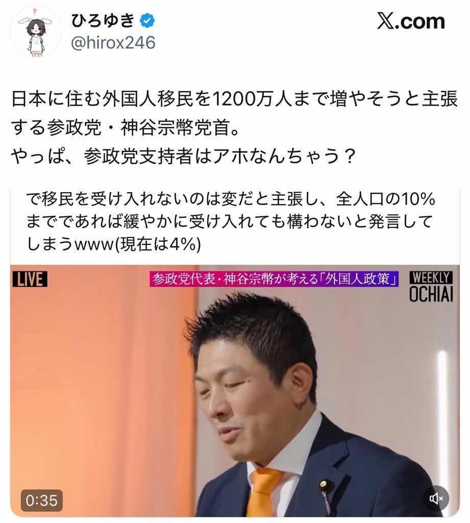 勝手に参政党を排外主義と決めつけてるから滅茶苦茶になる