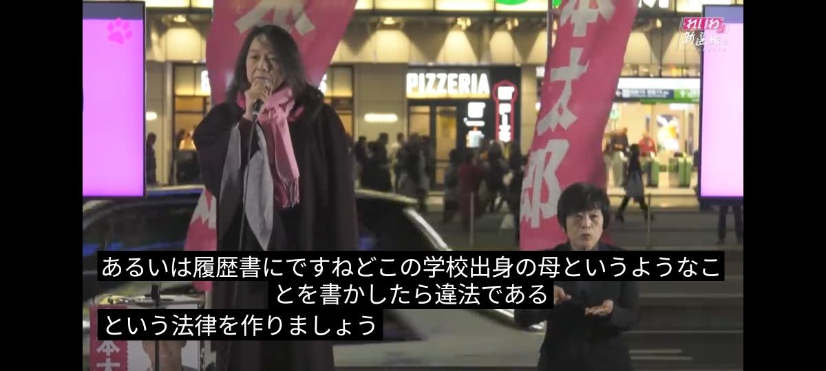 でそのうえで、今学歴差別を撤廃して、例えば就職するときに出身学校を聞いたりしたら違法。或いは履歴書にどこの学校出身かと書かせたら違法であるという法律を作りましょう。