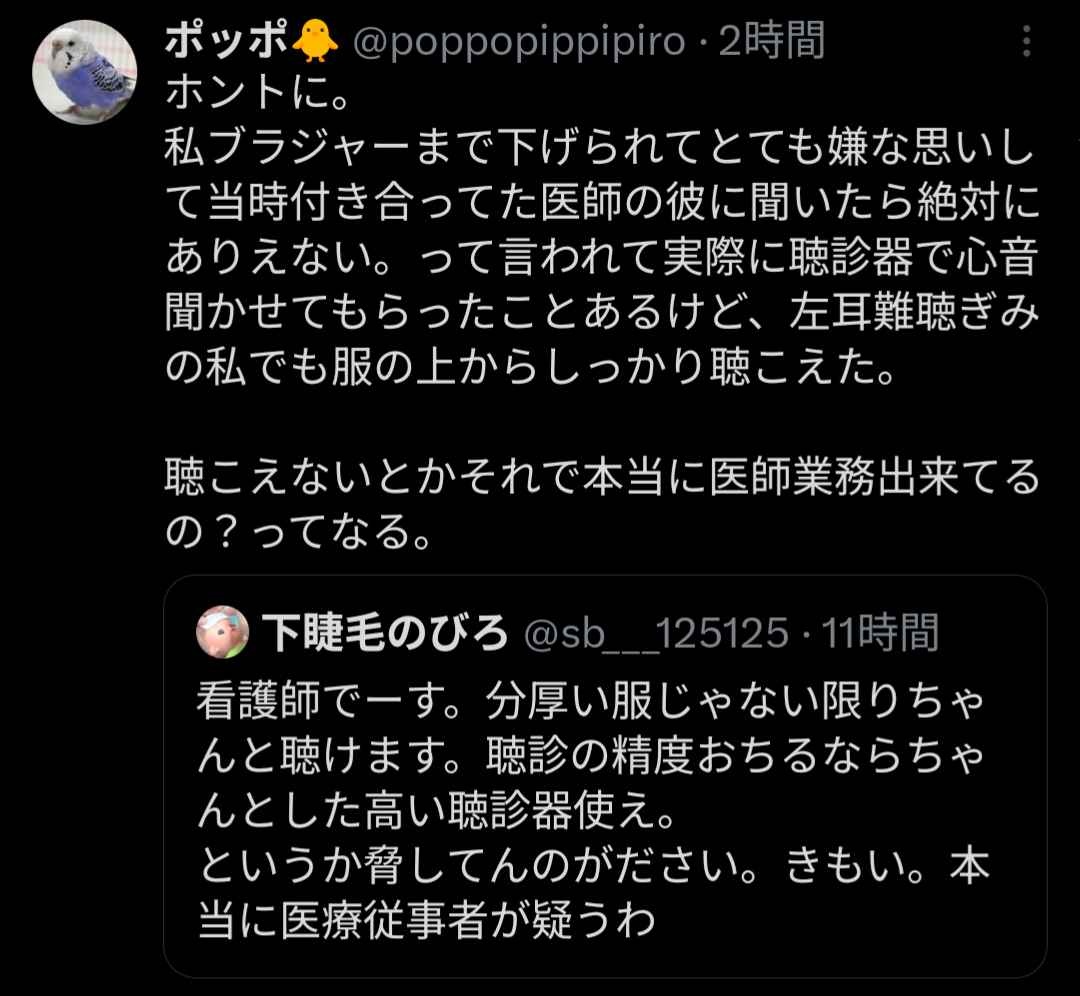 ちなみに看護師聞くのは肺雑と腸の蠕動音とMTの音くらいだぞ、これ豆な