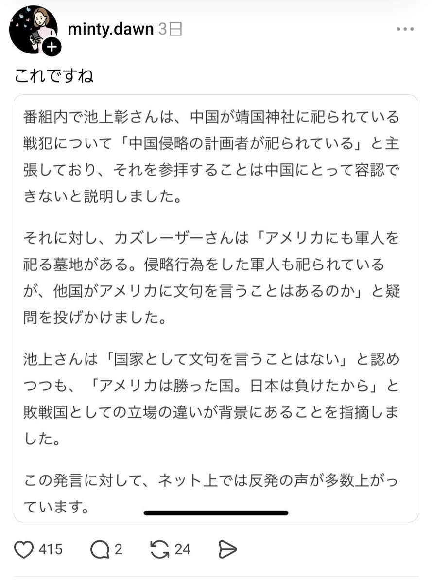 カズレーザーが誤解しているんだけど、アメリカにある無名戦士の墓(アーリントン墓地)に近いのは千鳥ヶ淵であって、靖国神社じゃない。