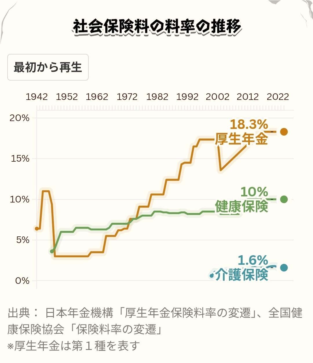 実際に社会保険料の料率も昔と今とでは大違いだ。1950年代の厚生年金の保険料率は3%だったのに対し、現在は18.3%で賞与も対象になっている。