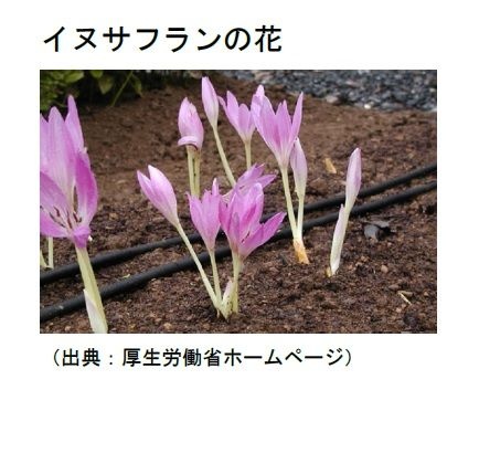 9月11日になって、警察から県の保健所に「イヌサフランの有毒成分、コルヒチンが検出された」との連絡が入ったため、保健所はイヌサフランによる食中毒と断定したものです。