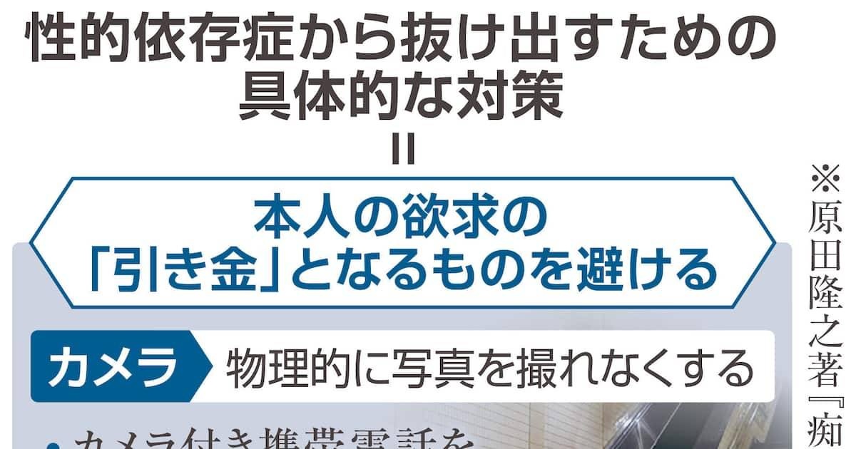 原田氏は性的依存症の要件として、ネガティブな結果(逮捕や離婚)があっても繰り返し起こしてしまう▽性的行動やその準備に多くの時間をかける-などを挙げる。依存者の多くがそうした行為に強い快感を覚えており、「やってはいけないという理性では治らない。病気であり、治療できるという認識を広めることが必要」と話す。