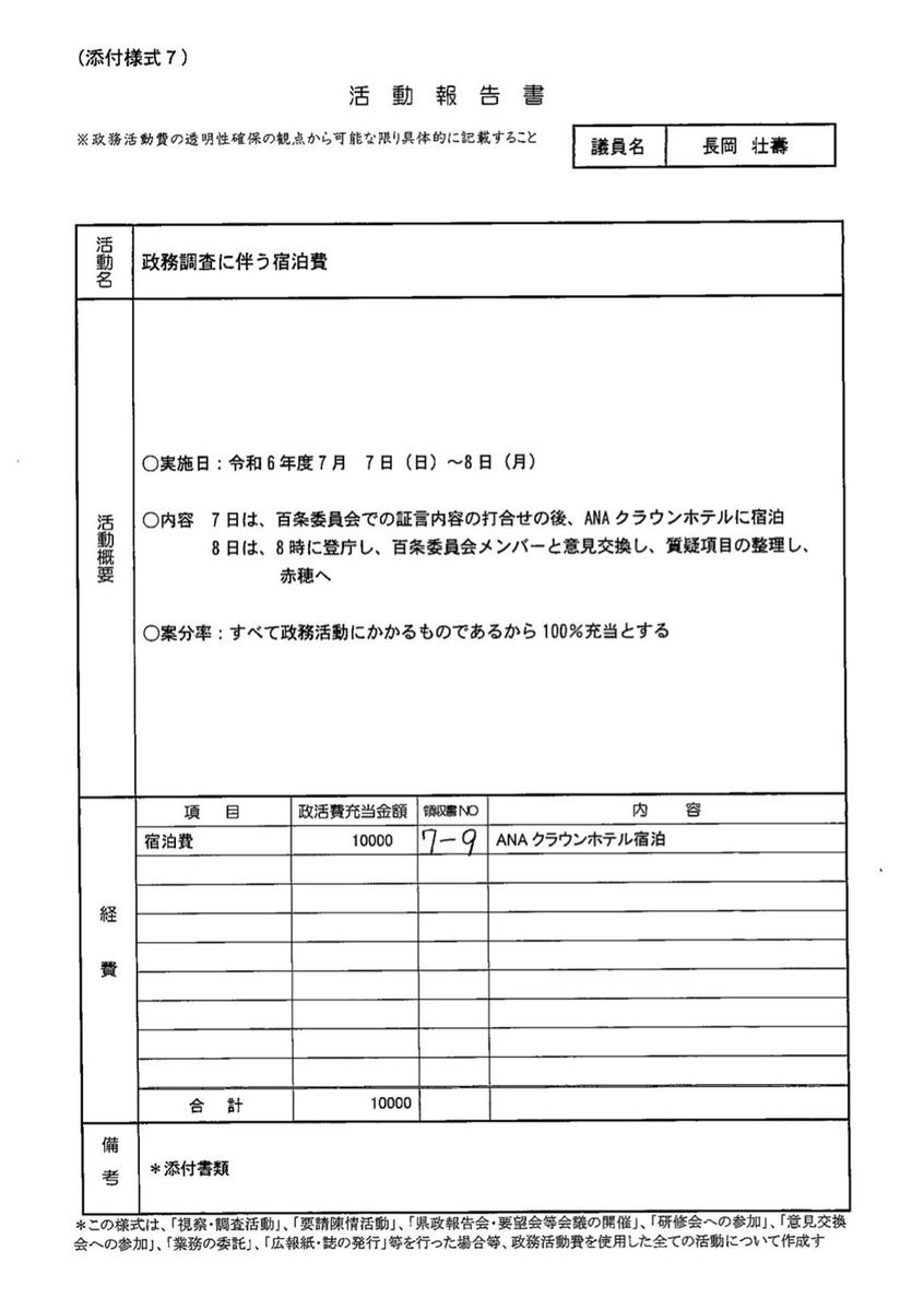 7/7は百条委員会の証言内容の打ち合わせ その後神戸のANAクラウンプラザホテルに宿泊