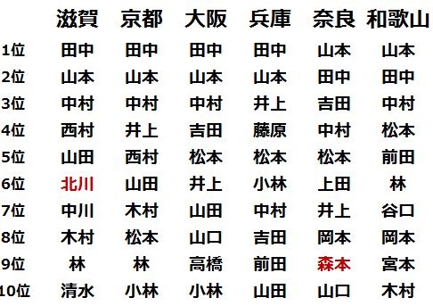 田中って西に多いんだな