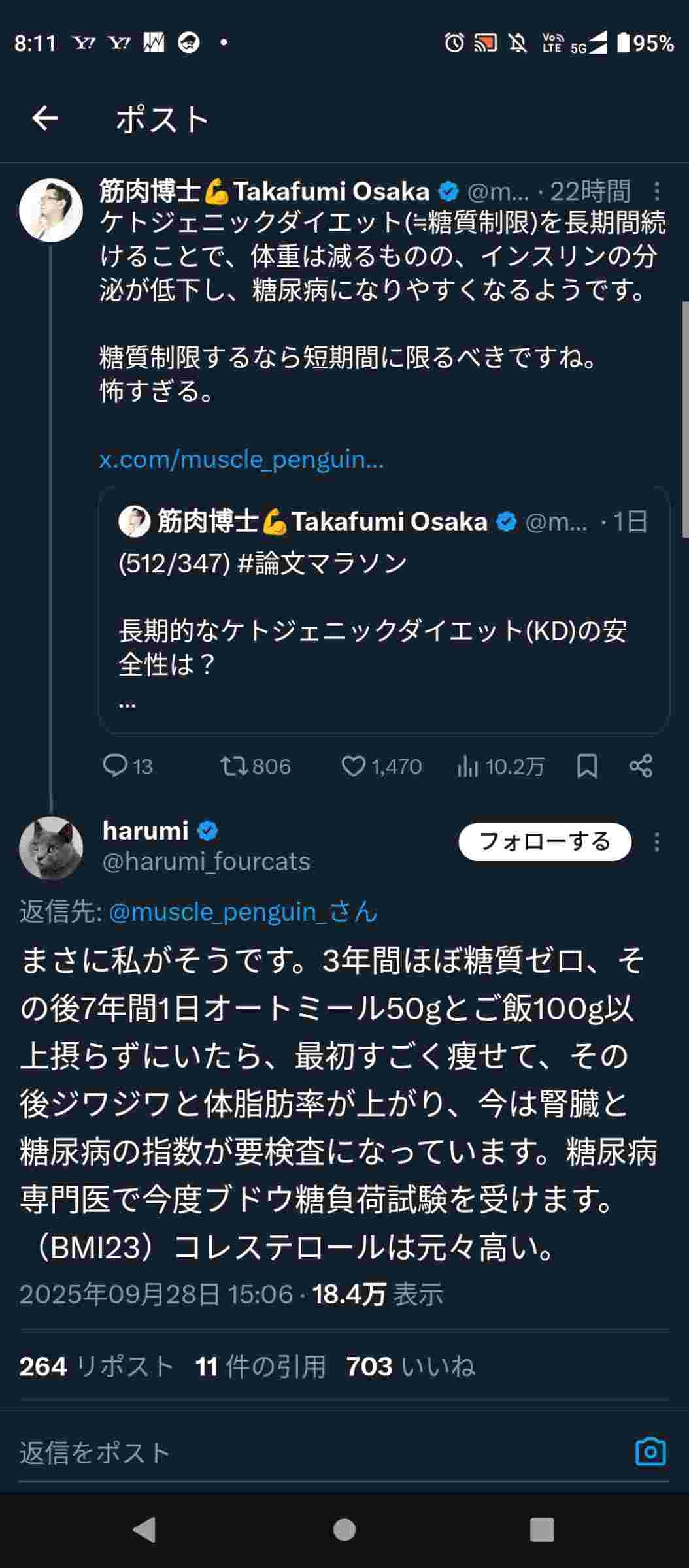 糖質制限続けて糖尿病って、それもう糖質制限関係なく別のとこに問題あっただけじゃないのって思っちゃうけど、まさかそんなことないよね