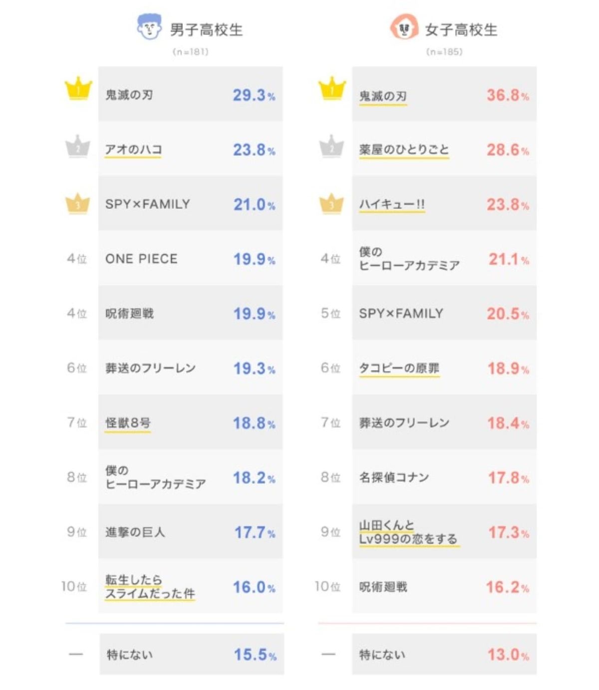 男子高校生&女子高校生が選んだ「今ハマっている漫画」ランキングが発表される どちゃくそあっさいぞ!!!