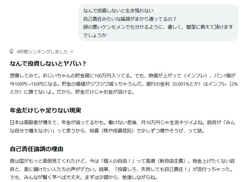 ジンバブエとかの札束のブロックで買い物する国に、投資で乗り越えれないやつは自己責任みてえな事言ってたら馬鹿だけど、そういうのが今の日本の論調になっててアホすぎる
