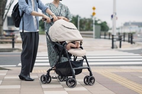 ベビーカーは法律上「歩行者」、車道ではなく歩道の通行が原則です。