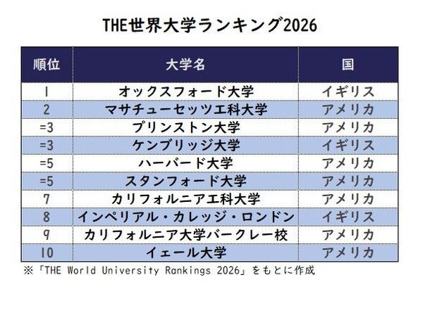 THE世界大学ランキング2026、東大26位…1位は10年連続オックスフォード大