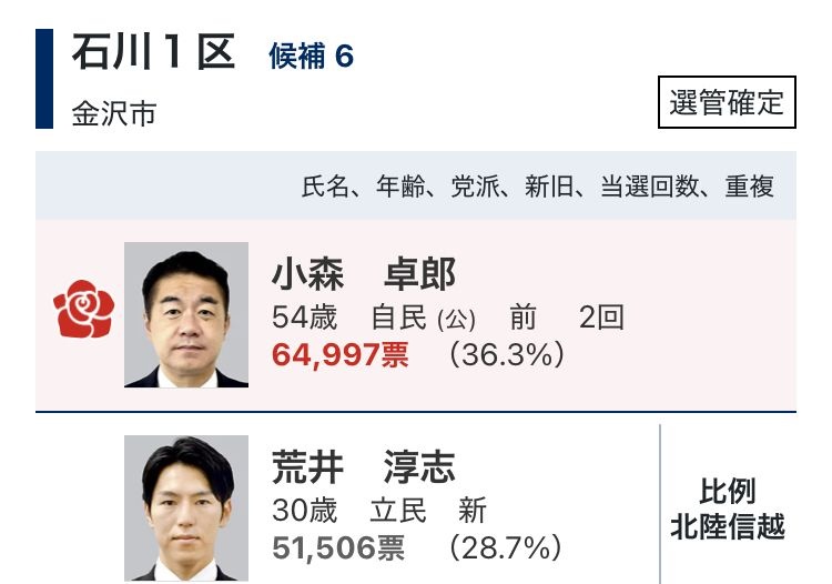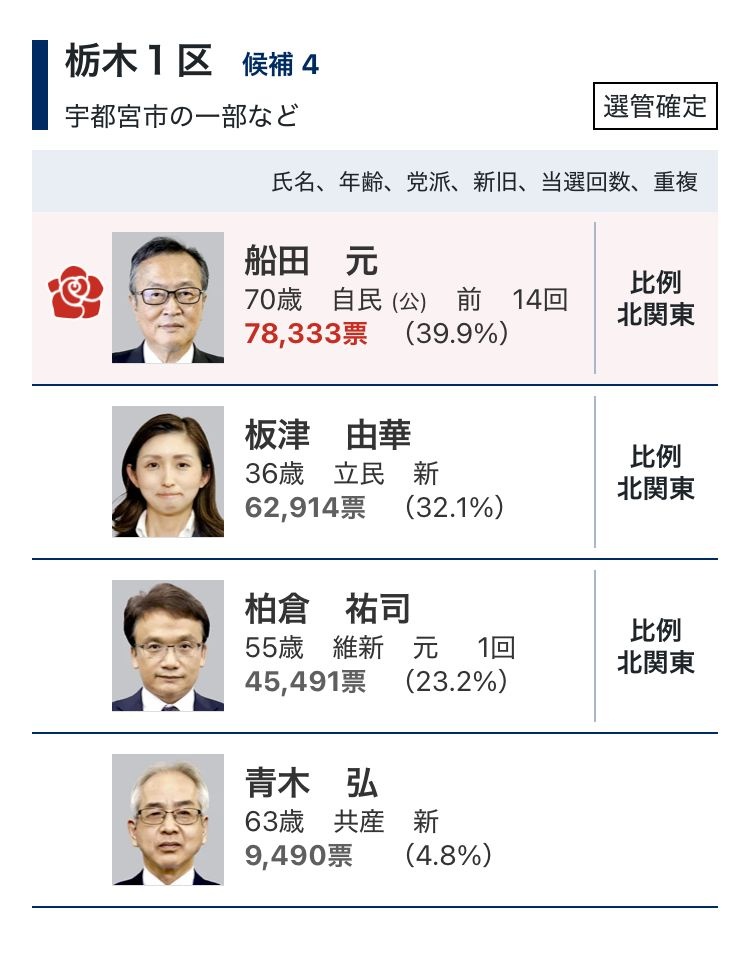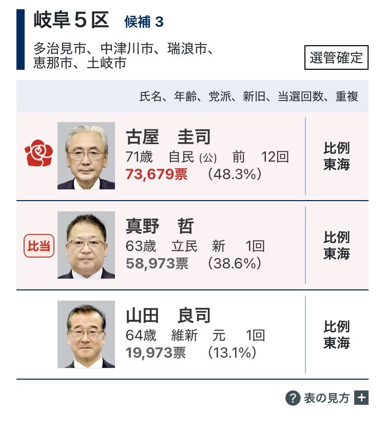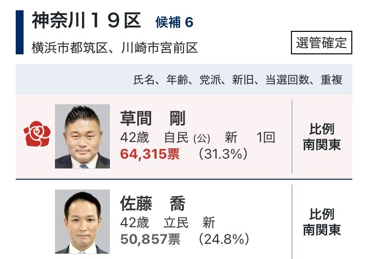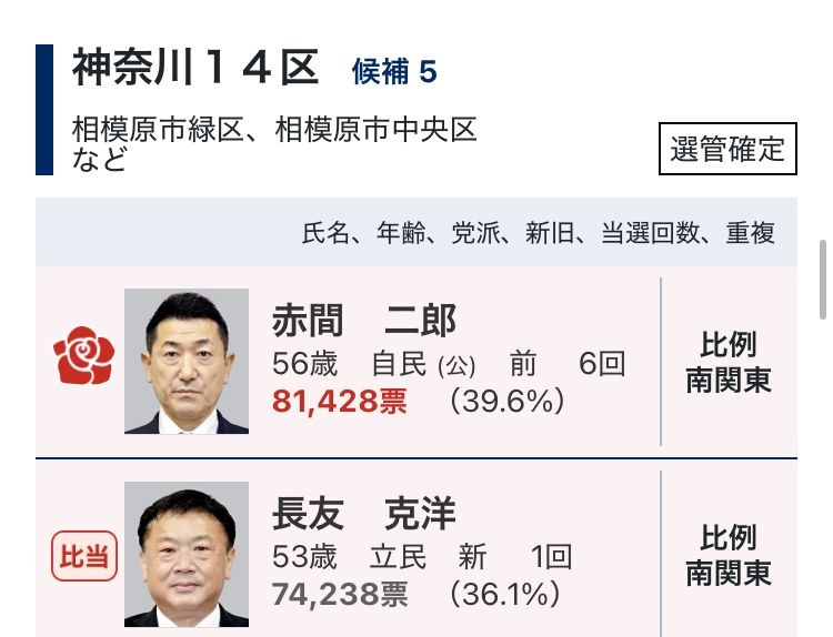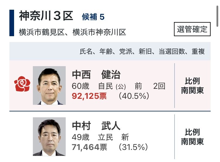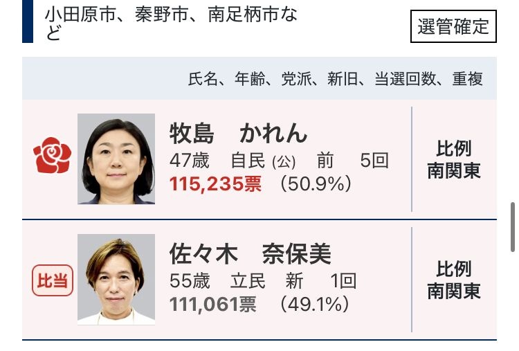 自民の当選者の後ろには大抵立憲の候補者がいる