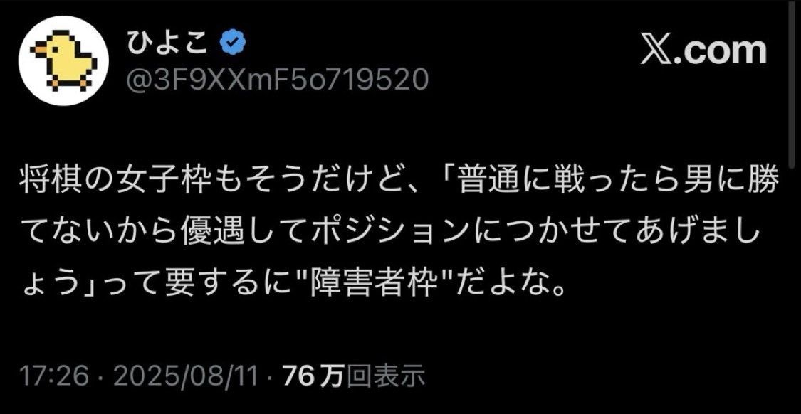 女性って男性と同じだけの能力があるって建前でやってるのに女性枠はほんとに不思議だな思う