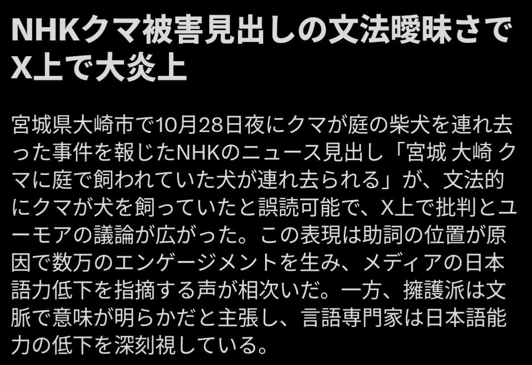 元の見出しは「クマに庭で飼われていた犬が連れ去られる」