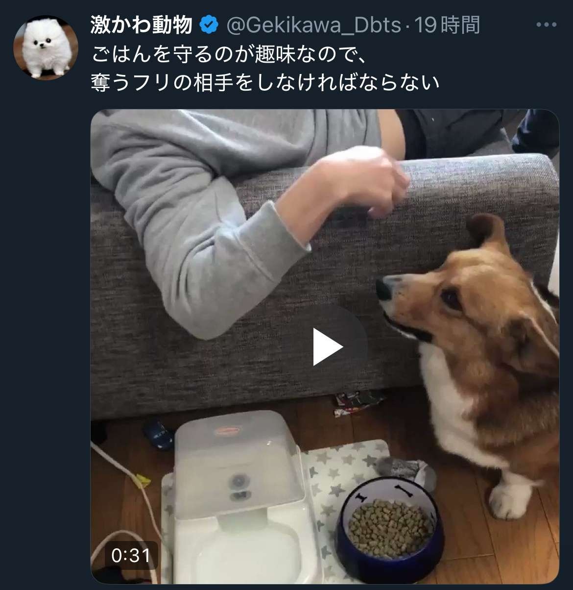 「待て」言われてて食べられないけど餌取られるのは全力阻止