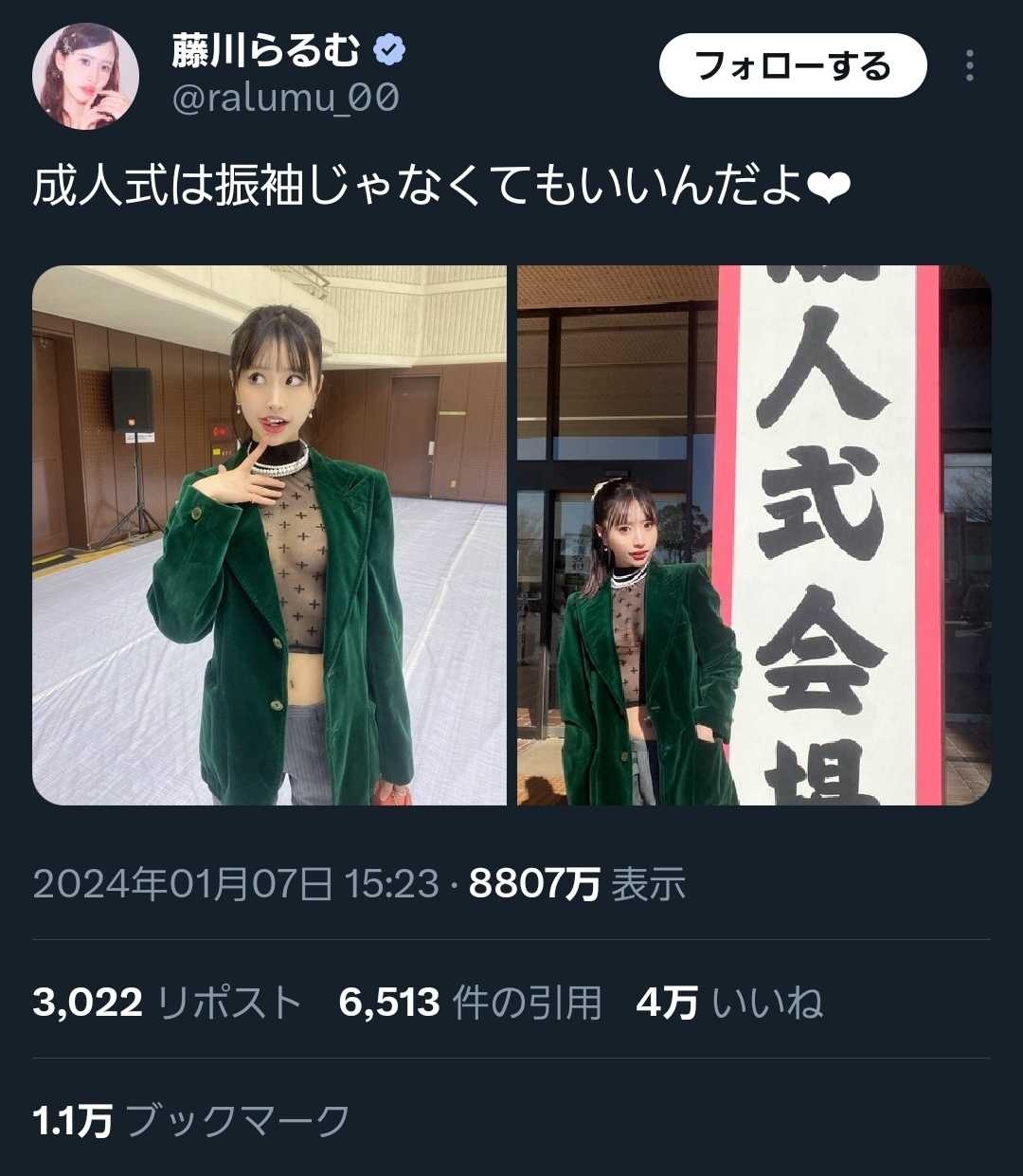 ハタチになって、おぢさんたちの赤黒オチンポを受け入れる準備万端です、ってアピールしてるんだね☺