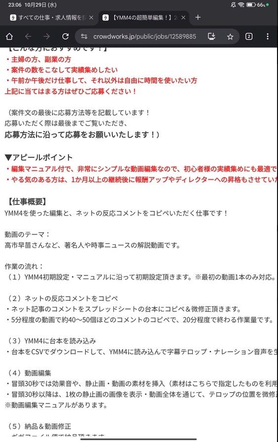 自分でクラウドワークスに下書きを作る自作自演を行ってしまう。パヨクさんの晒した内容では実際には募集公開されていないのになぜかURLとその内容までわかる