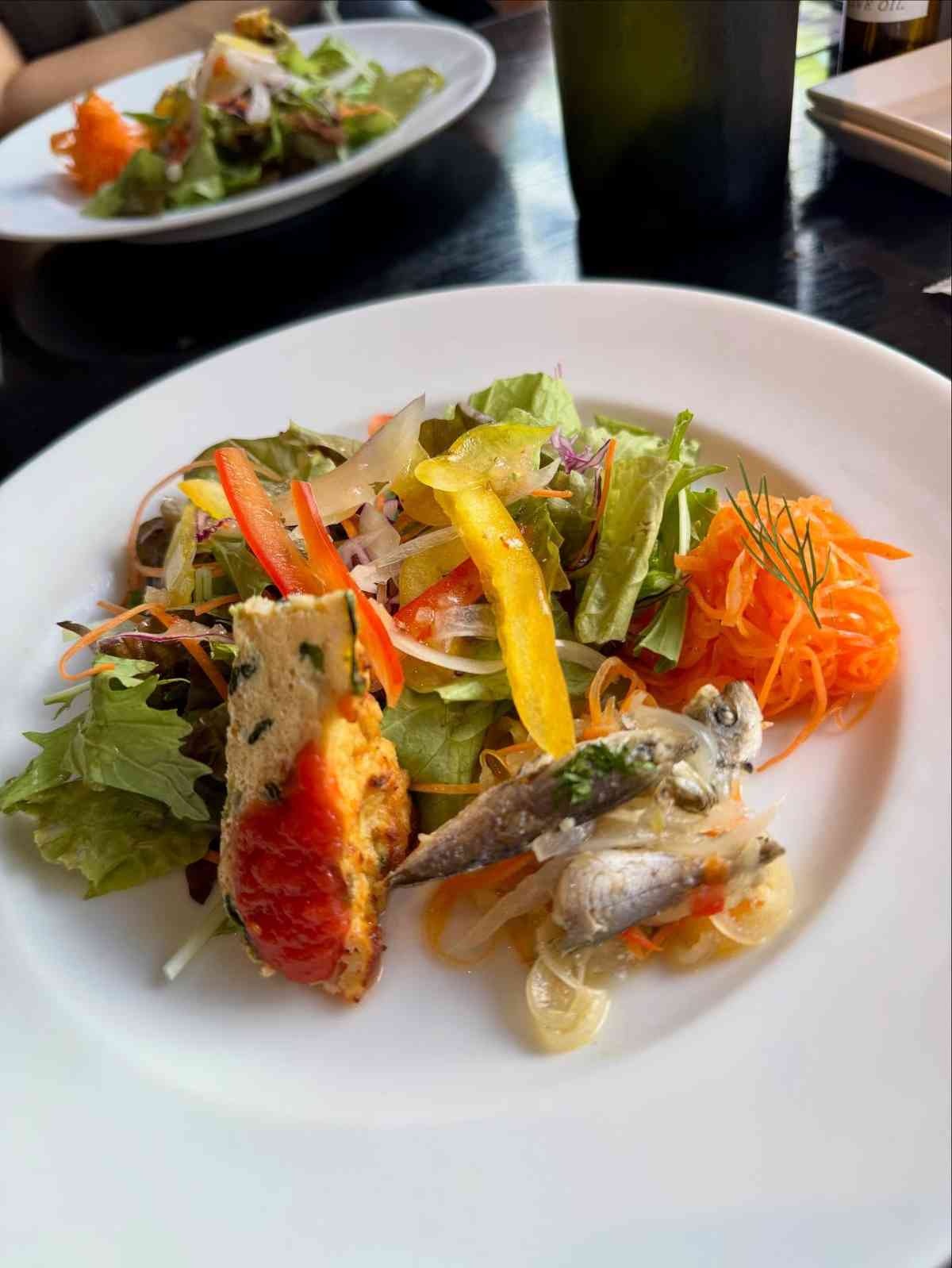 「だいぶ前になりますがお友達とランチして来たお店 美味しくて居心地良かった~ この時はテラスが心地よかったな」とつづり、花柄のインナーに白いカーディガンを羽織った自撮りと料理写真を投稿した。