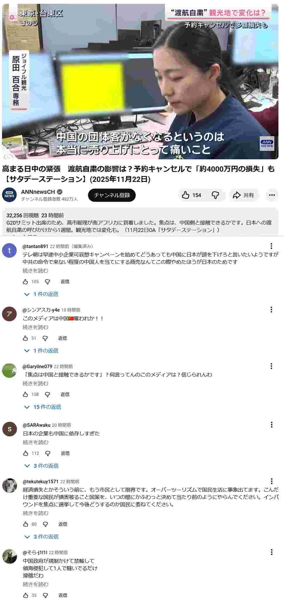 観光会社「売上4千万円減りました😭」愛国者「メディアは中国雇われか!😡日本の企業は中国に依存しすぎ!😤」